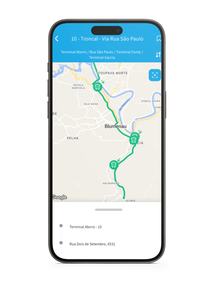 O app oficial do transporte público de Blumenau, Santa Catarina