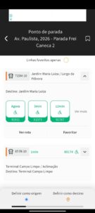 Pelo menu Home ou pelos Favoritos, ao clicar no ponto serão exibidos os códigos e as linhas que atendem a este ponto de parada, o destino delas, bem como as previsões de chegada – caso haja um ou mais veículos em deslocamento, será exibido o prefixo dele com destaque em verde, com o tempo real que falta para sua chegada. Também podem ser exibidas informações de acessibilidade, ar condicionado e transporte de bicicletas, caso disponíveis.
